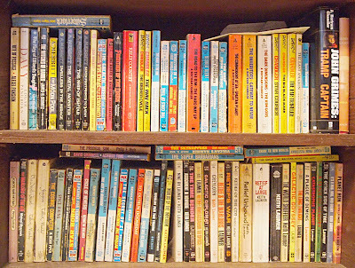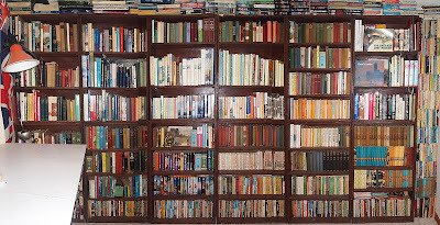 Notable on the shelves above is my collection of A Bertram Chandler's John Grimes series of books. That is one of the few series of stories that I read and enjoyed once again as an adult. The fact is that I missed many of them when they were published, which meant that I had to go back and collect them later. Above this shelf, but not shown, is a whole shelf of Edgar Rice Burroughs books which I featured previous post.