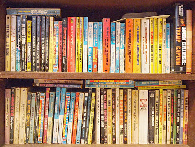 We also get a glimpse of my collection of The Man From Uncle books, half hidden behind the SF books along the top of the bookshelf.
