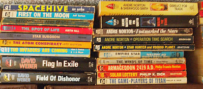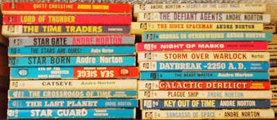 Most of my Andre Norton Collection. I am amazed at how many books she wrote and I never read -- even during the time I was reading so much SF. I think that after Witch World I fell out of love with Andre Norton, probably because they were less boy's own adventure stories -- the type of stories that appealed to me.