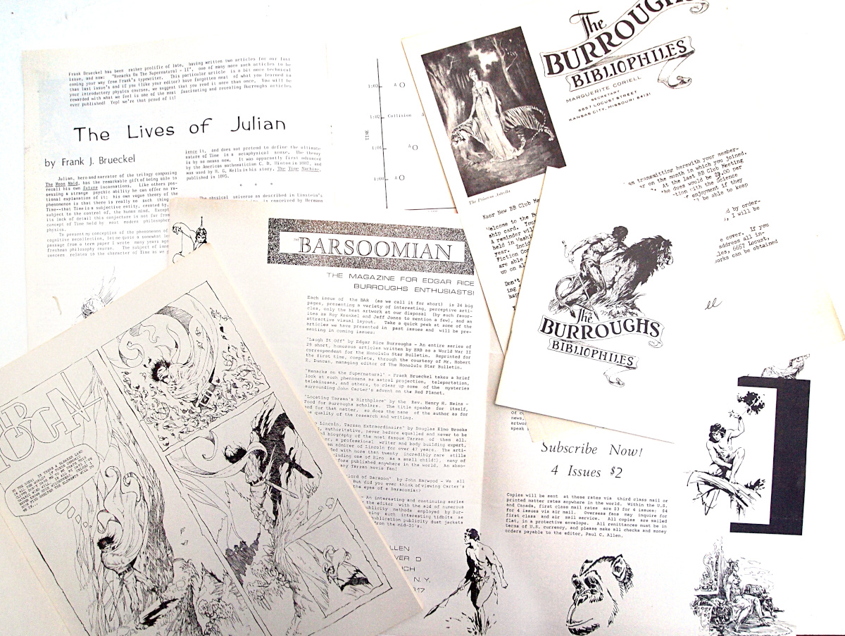 The “Barsooniam Bazaar” has a 1968 date. The Barsoomian, #14, a quarterly fan magazine ($2/year), is also copyrighted 1968. The Burroughs Bulletin,#18, the fan magazine of The Burroughs Bibliophiles ($3/year) also is dated 1968. All of this would seem to indicate that I was a pretty devoted fan of ERB by 1968.-- though not devoted enough to actually subscribe to these clubs.I’m cheap. But where are all the ERB books that inspired this interest in ERB? They are certainly not recorded in my records of the time.