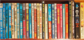 First; a time line. I began reading science fiction books from the library and paperback books probably in 7th Grade, which would be 1962. (I was a rather slow starter as a reader). This would be the point where I discovered Andre Norton books. Presently, I have 28 of them of them in my collection, pictured below. However, just for a point of reference, Night of Mask was copyrighted in 1964, and all the books to its right were copyrighted in 1964 or later.