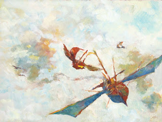 The Archipelago of the Tenth Star’s origins can traced back to the Edgar Rice Burroughs' story Beyond the Farthest Star. The planets in that story had a shared atmosphere. There were also album covers (for the group Yes) back in the day with floating island motifs, and I believe that the movie Avatar also had them as well. However, it was ERB's book that inspired the Pela for me, beginning with a series of paintings I starting in 2012 entitled “The Archipelago of the Three Lovers.” They depicted floating islands suspended in the space between three planets or moons rotating around a fixed point who shared a common atmosphere. I’ve used some of those painting to illustrate this post, since I lifted the Pela from that concept. I am actually using a detail from one of those early paintings as the current cover of The Lost Star’s Sea. In any event, as the Pela grew ever vaster, it became increasingly hard to imagine how Naylea and Wil would ever find their way back to the Nine Star Nebula. Clearly it would take more than my original shipwreck story to round out the book.