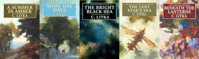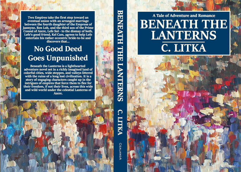 Yep, I'm at it again. I'll be changing the cover of both the print and ebook for Beneath the Lanterns to this art. There are several reasons for this change. One is that I want the ebook and print book to share the same cover art. I didn't like my original cover art which is still have that on the print edition. Not, mind you, that I sell any books, but it shows up in the listings. I do, however, like the art for the ebook version. I can't say that it sell any books, but it doesn't seem to not sell them either. However, the original art work is smaller, and I didn't think it would scale up to 9x6" at 300 dpi very clearly. So what I did was essentially repaint the same scene, the street alongside the lake, the "Reed Bank" in a similar, but slightly more current "Use your imagination" style abstract landscapes on a larger scale. I think this turned out as well as can be expected. I'm going with colorful, if "artsy" covers.