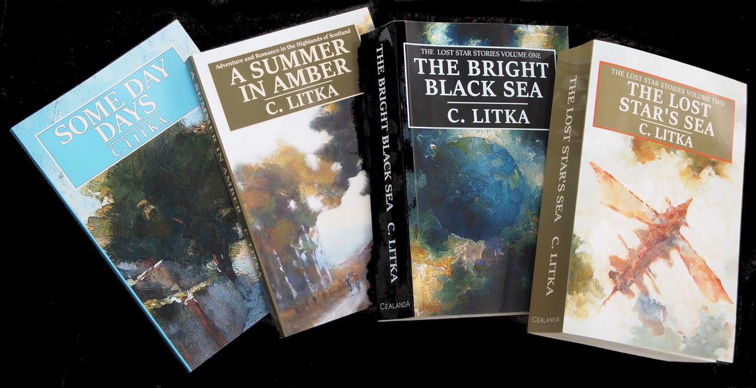 And it has also meant more work for me as well. It seems that reading the words on the printed page is more of a third-person experience -- I look on them almost as if someone else had written them -- and I see all the little errors I misses in the first have dozen times I've read them over. They just pop out, the missing words, the missing commas, the awkward phrase, the repetition, and run-on sentences. We can't have that. I've always tried to put my best work out there, and so I can't turn a blind eye to these errors. I've read over The Bright Black Sea and corrected all the errors I found, so you want version 6, 1 Nov. 2017 edition. I am in the process of rereading and correcting A Summer in Amber. The corrected version should be available in the next few days. After that its The Lost Star's Sea a a week or two, and then, maybe Some Day Days.