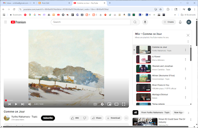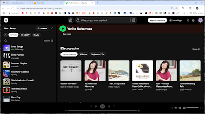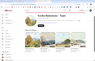 I was scrolling through my YouTube feed when I came across the video on the center left of the screen shot above. It proved to be an "album" of piano pieces by a Japanese composer/pianist, Yuriko Nakamura. Some music on YouTube Music also appears on You Tube channels and vise vera, and this is an example of that; a song with just a static version of the cover. I clicked on the video and found this;