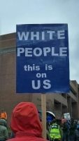 Second year in a row. Last year it was sunny and clear for our march. Eagles circled overhead at the start of the route. People were fired
