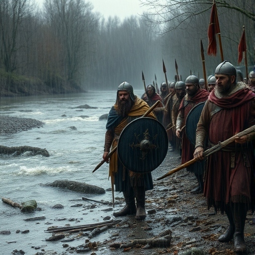 When report came back from his scouts that Penda’s army was struggling to cross a swollen river, with some of the army on the far bank and the rest stuck on the near bank, Oswiu saw his opportunity.