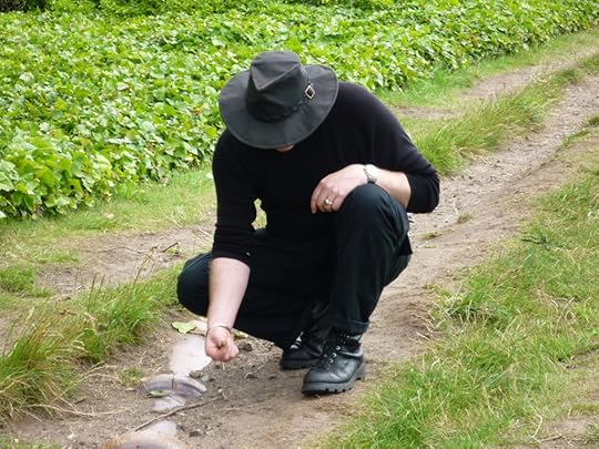 “Ridge and furrow,” Paul said, indicating the undulations that ran across the field. “Or rig and frig in archaeological slang. Medieval, judging by the distance between the ridges. Roman fields have narrower gaps.” Parallel lines, like the ripples that form on beaches as the tide goes out, marked the field in straight lines. In medieval times common land was ploughed or dug in long parallel strips. The soil from the furrow was piled on to the ridge, creating two different microclimates for crops. In a dry season, the seeds down in the water-collecting furrow would be assured enough moisture for growth, but if the year was wet, the crops in the freely-draining ridge would flourish. Thus medieval peasants hedged their bets and their labour to ensure a crop. Where the field has been turned over to pasture rather than cross ploughed, the centuries-old pattern of cultivation can still be clearly visible.
