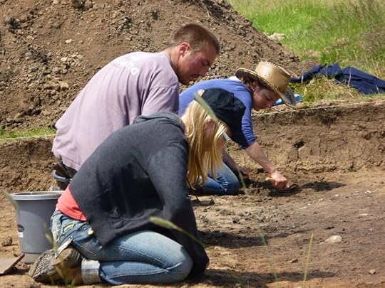 A couple of miles inland, with the Cheviots looming in the distance, we arrived at another BRP dig. This one cut through the grass, topsoil and subsoil to reveal the limits of a prehistoric lake. One of the archaeologists there told me that in Mesolithic times, that is between 10,000 and 5,000 years ago, where we were standing was a large figure-eight-shaped lake, and we were standing at the pinch point of the lake. It was the obvious place for a settlement, but our distant ancestors were proving elusive. The archaeologists had only uncovered the remains of a millennia-old ditch so far.