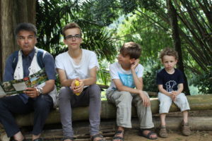 A long time since I posted anything on my blog, but we were away for the summer in Sri Lanka, visiting the land of my father. Here’s a photo of me and my boys, trying to work out where we were going to go next!