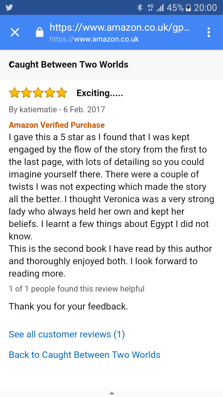 Patiently means that I check several times per day Amazon ~ Caught Between Two Wolrds Amazon UK ~ Caught Between Two Worlds and all other sub-pages I know where the books have been bought.
