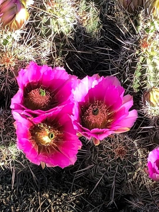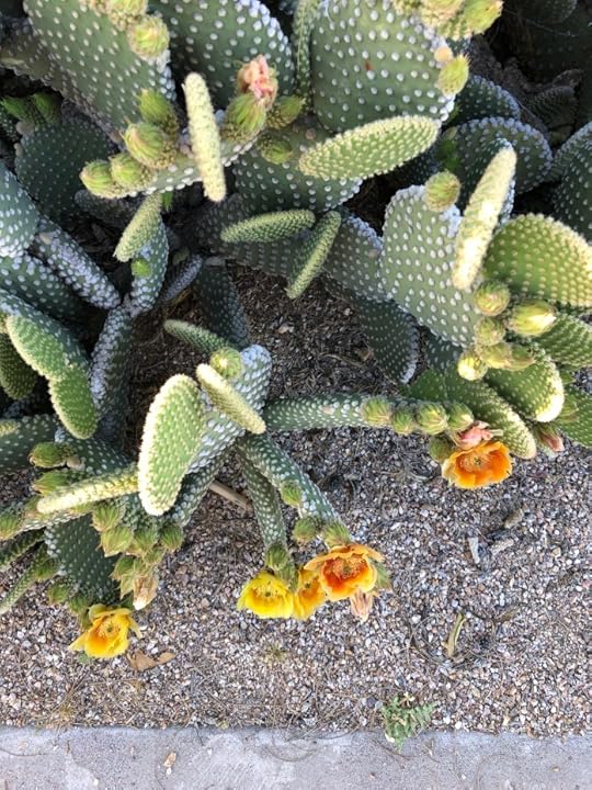 I am safe home from my trip to LA and other points California, and very glad to be here. The cacti are beginning their glorious spring bloom.