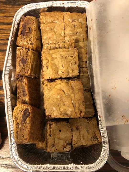 UNBELIEVABLY DELICIOUS HOME-MADE BLONDE ESPRESSO BROWNIESFROM SAINTED FRIEND (I DO KNOW HER NAME) WHO ALSO DISLIKES CROWDED STORES AND LINES AT THE PO BUT BRAVED THEM ANYWAY IN ORDER TO SEND THESE TRULY WONDERFUL GIFTS. LORD, I AM NOT WORTHY…