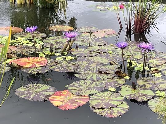 The hour-and-a-half tour led up and down many sets of granite steps, through patches of mossy “lawn,” through stands of rhododendron and mountain laurel, and over bridges, all with a stunning view of the quarry, now a pond/pool (in which however no-one can swim as built-up silt and debris make it dangerous (?)).