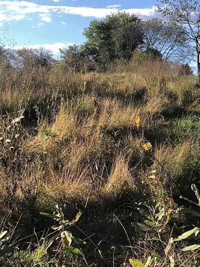 I’ve stayed the last two nights at what used to be a dairy farm in New Hope. Beautiful old stone house, surrounded by perennial beds–strawflowers, yarrow, morning glories, fuchsias, begonias, all evocatively decaying in early fall. The weather’s been unseasonably warm. Yesterday I was able to amble the path that’s been mown around the perimeter of the back field.