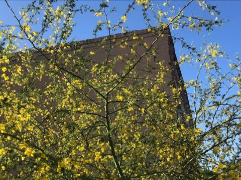 Rows of palo verde trees, in full, glorious bloom, line the sidewalks.