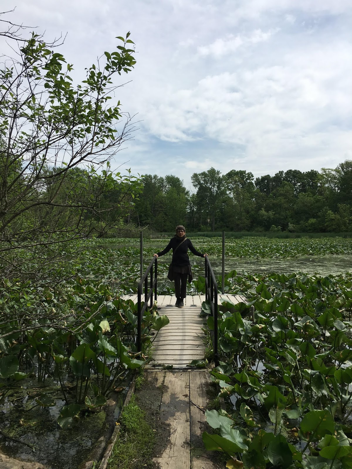 The above was taken at a glacial kettle (basically, a bog) outside Columbus, Ohio. I met my Columbus pal at Corpus Christi this morning for 8:30 Mass and then she took me for breakfast to the Fox in the Snow and then we went and visited some of the "habitats" outside the city. In the course of our three walks, we saw two herons, one pretty long snake, several turtles and frogs, a red-winged blackbird and a whole bunch of squirrels. She, my friend Mary Beth, recently spied a muskrat at the glacial kettle.