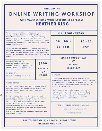 Many of you have asked over the past few years when I might be offering another 8-week Writing Workshop.