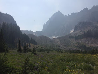 Sunday we hiked through burned snags and new growth, reminders of a forest fire fifteen years earlier. A terrible beauty. A wilderness restoring itself, the miracle of nature. My phone registered 9.1 miles, my blisters insisted more, but the eerie beauty made me oblivious to both until hours later.