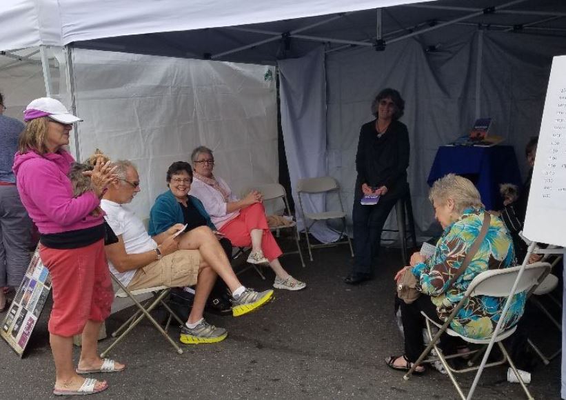 This will be the second year for the authors’ booth located in the vendor area behind Zeek’s Pizza. Two tents will be for author presentations and a third will offer their books for sale through local bookseller, Merryweather Books. Merryweather’s also carries the books year round, with a special section of the store dedicated to local authors.