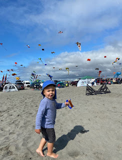 Two weeks later, we were on the road again. This time for less than four hours to Cape Disappointment State Park at the mouth of the Columbia River. Erin had booked the reservation to coincide with the International Kite Festival in Long Beach, and fortunately, our son-in-law, Elliot, was able to join us on this trip. It was such a joy to watch all the amazing kites, but even more so to watch Jack learning to fly his own. It was more like walking a dog than standing or sitting in one spot like the pros, but the adorable factor made up for any deficiency in skill.
