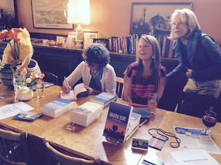 For me, I saw college colleagues and students - current and former. I saw old friends, friends I've known for over thirty years, friends from the Mother-Daughter book club formed when our 26-year-old daughters were in elementary school. I saw Biker Babes, the incredible women I cycle with and some who may decide to join us. I saw people I didn't know at all, others I'd met when posting flyers and handing out postcard invitations at the West Seattle Farmers' Market last Sunday. I saw family - husband, daughter and fiancé, sister - as well as friends who have become family. Sisters of the heart, you know who you are. And I saw writers, that special breed I am honored to one with, amazing creative souls who put stories on the page one letter, one syllable, a word, a sentence at a time.