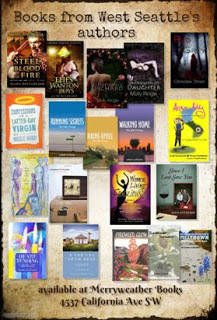 When Saturday rolled around, I was at the Morgan Community Festival in West Seattle where eleven local authors shared their work in a series of readings throughout the day. Many thanks to Alice Kuder for spearheading this event and to Merryweather Books for being on hand to sell our work.