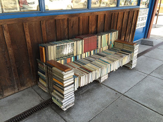 On Tuesday I arrived with time to spare before my Memoir Writing Workshop at the Duvall Library. I came across this bench as I wandered about town and wondered how the authors would feel about the current employment of their hard-earned words.