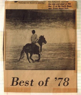 The house stood on a lush hillside overlooking Waimea Bay on the North Shore of Oahu. The view from the wide lanai took my breath away, literally. I felt as though I were on the top of the world. And that was before I was handed the keys to the bird shell blue convertible Karmann Ghia and the bridle to a beautiful bay gelding. I'm not sure which I fell in love with first.