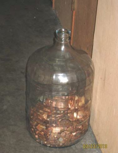 I don't know how many year my dad collected pennies, but I do know that from the time I returned home after a dozen years of wandering a large, heavy glass water bottle stood in the corner of the kitchen collecting pennies. A few years later, when my daughter stood as tall as the jar, he'd put a penny in her tiny hand and guide it into the jar, listening for the plink, always making certain it never reached her mouth instead. Now my daughter is a lovely young woman of twenty-five and her Boppa has been gone since 2002.