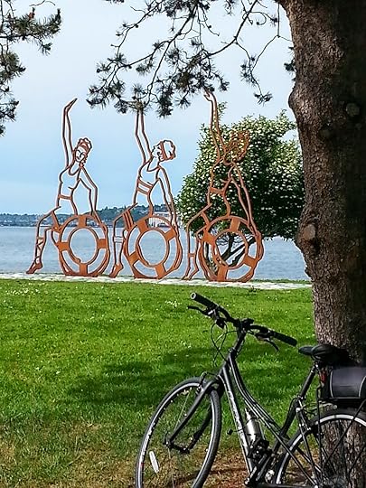 A rest stop with Luna Girls by artist Lezlie Jane on the West Seattle waterfront. When summer 2013 rolled around, my friends decided they were done with distance riding. I was without a training partner and the intensity of my weekly rides waned. That same summer, on a camping trip in August 2013, I received a contract offer from Booktrope Publishing for The Alki Trilogy.As I shared in Biking ... Insanity? a few weeks back, I now have a new training partner. May and I are registered and clocking miles in preparation for the August 15-16 ride.