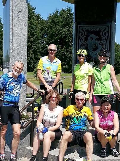 The Fearless SevenWe met our ride leader, Jeff Stewart, and four other riders at Terminal 91 on the Seattle waterfront. A group of seven, we headed south along the water, through downtown and straight up Yesler hill. That was the first time I was tempted to get off the damn bike and throw it in front of the next Metro bus storming past me. And I'll admit it wasn't the only time the thought zipped through my mind during that "some hills" ride.On a positive note, the weather was gorgeous and the group was fun. We rode to Curt Cobain's home and visited Jimi Hendrix's gravesite. After cruising through Renton, we rode around the south end of Lake Washington and then north along the east shore before crossing the Interstate 90 floating bridge over Mercer Island and returning to Terminal 91.