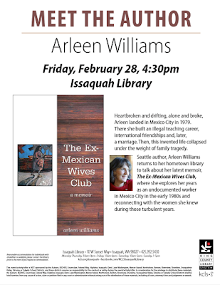 Many thanks to the readers, old and new, who attended my author event featuring The Ex-Mexican Wives Club last Friday night at the Issaquah Library. The roses are lovely, Keri. The photos are wonderful, Darcey. There is little that warms this writer's heart more than a room full interested, articulate readers.If you enjoy my work, I'm hope you'll consider starring and/or posting a brief review or comment on Amazon or Goodreads.