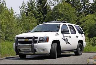 A while back, I was driving home to Seattle from eastern Washington with my sisters. I sat in the back seat. As we drove over Snoqualmie Pass and started the descent into the Puget Sound lowlands, I noticed two police vehicles parked in an open area, perhaps a weigh station parking lot, to the north of the highway. One was an SUV, the other a sedan. Both were black. They were parked head-to-head with the drivers’ windows aligned. The SUV was on the highway side, almost blocking the view of the sedan.