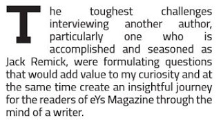 Writer and teacher, mentor and friend, Jack Remick is featured in an exclusive interview with Jasmina Siderovski for the Australian publication, eYs Magazine.