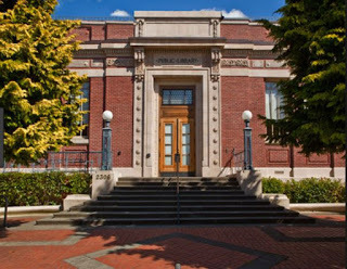 It’s a beautiful red brick building with antique light fixtures and heavy wood furniture. The library website states: "The library, which opened in 1910, is a Carnegie-funded branch designed by W. Marbury Somervell and Joseph S. Coté. It is listed on The National Register of Historic Places."
