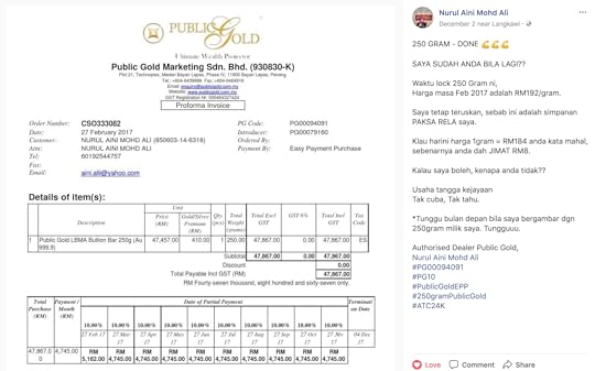 Ini catatan kesyukuran dan pengalaman beliau dapat membeli tanah secara tunai di Langkawi hasil simpanan emasnya. Dalam pemerhatian saya, beliau antara pembeli emas yang menggunakan kaedah EPP secara tegar.