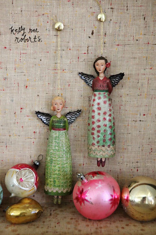 Hands down, these NEW figurines are the sweetest. I think they're my favorite figurines we've ever made. I loooovvvveee them. Both are delicately decorated with gold wire, glitter, and silver tinsel wings, and are truly made with love. Perfect for your holiday mantel or dining table!