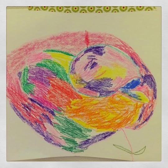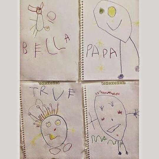 (True's first family portrait: Bella dog, Papa, True, Mama)Super grateful for all the art True's been making lately. Something has shifted, and he's beginning to create drawings that look like things. Mainly flowers, and people. So cute! We created a gallery wall in our house where he can hang his art. I love the pride that comes across his face with each artwork tacked up to the wall. Man, I love that kid.