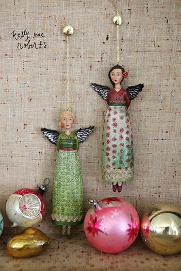 It's a little hard to see in these photos but the skirts are soft (not hard like resin) and I just love the delicate details of the tiny gold wire wrapping around the skirts, the velvet ribbon, the wings. They're like wintery angels. We put a lot of love in creating the newbies, and I adore how they turned out.