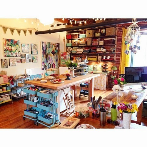 I love getting a peek into how others store their supplies and how they set up their creative spaces in general. I've had so many different set up through the years - from a corner in a dimly lit basement to a dining room table to big space outside my home - but the one thing that remains the same no matter where I've created (or how I've organized the space) is the intention to make it as inviting and nurturing as possible.