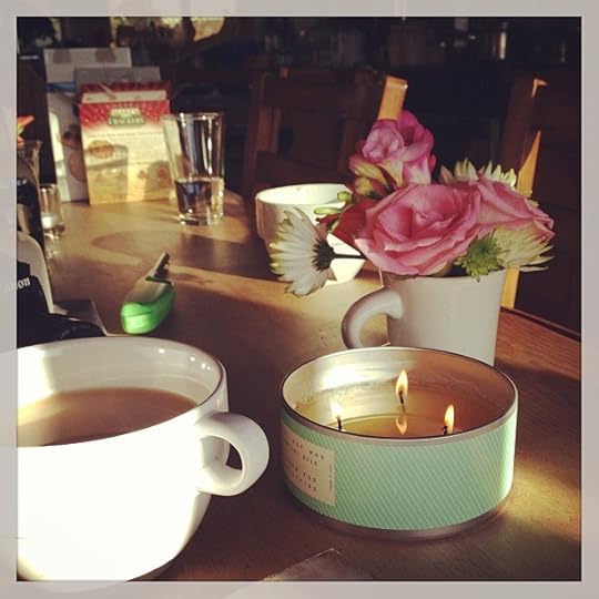 For me, that usually a candle, a cup of tea, perhaps some music, and always always an intention for that day's painting session.....usually on a post it note......