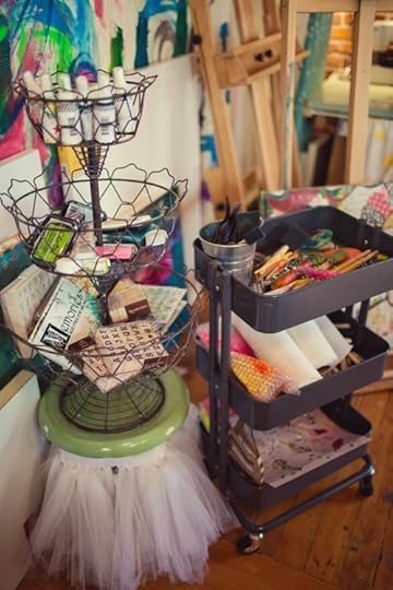 There are so many ways to organize your space (I'll share my tips below), but the most important thing is to notice what feeds YOUR soul and to create an inviting environment that will support it. So if creating in the middle of the kitchen island with lots of activity swirling around is working for you, then great! If you notice that your soul needs quiet, then perhaps moving your operation to the corner of quiet area in your home would be a good move. I’ve seen some pretty amazing closets that have been converted to creative spaces! The point is is to give yourself permission to claim your art-making time as sacred, important, and to create a nurturing environment for it.