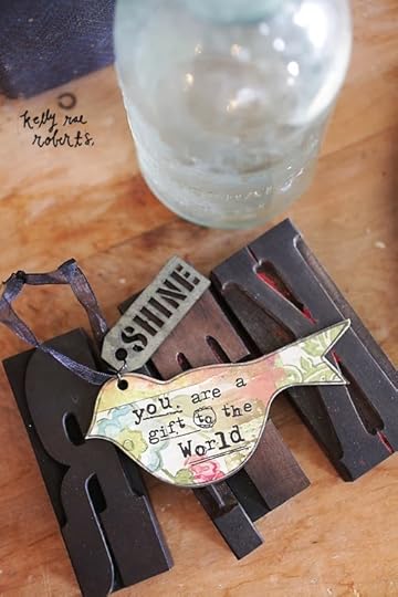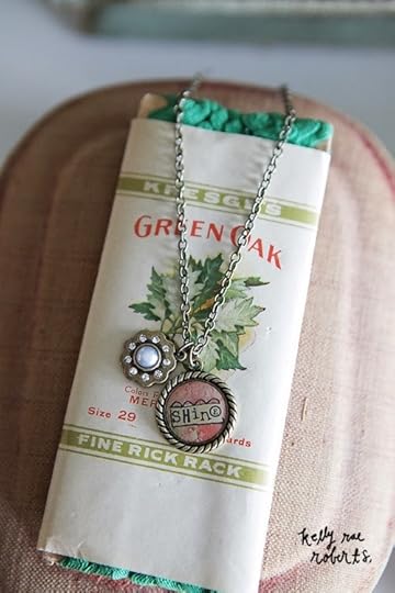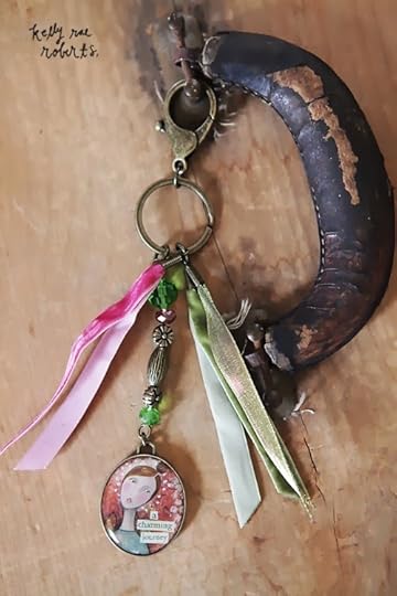 Can I just say how highly delightful these key chains are! Love the double-sided medallions. Love the mix of ribbons. Love how they look clipped onto tote bags, purses, and backpacks - the tiniest bit of artful love. This one reads 'a charming life' on one side and 'no dimming necessary, shine brightly on the other.' See it here.
