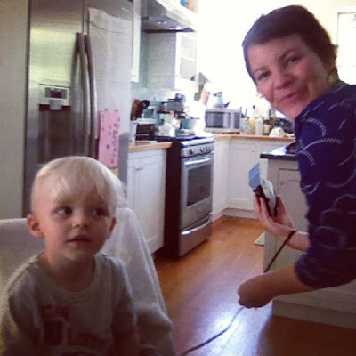 SO, I you tubed "how to cut toddler boy hair" and this video popped up showing how to cut with clippers. Then, I watched this video showing how to cut with scissors. I ran out, bought the Wahl clippers and then went to work using both the clippers for most of the cutting and then the scissors for the top of his head. The entire thing took about 15 minutes. It was tear free (for all involved) and True watched an episode of Yo Gabba Gabba while I went to work. Easy!
