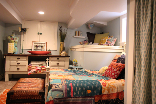 (Bedspread is a patchwork quilt made from vintage indonesian fabrics.)