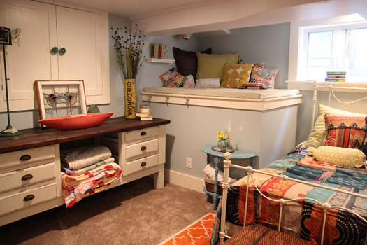 These aren't the very best photos, but it shows the progress of our newly remodeled guest room! I love love love this room and I find myself here often, working on the chaise, playing on the bed with True, or getting some quiet time. This project has a been a couple of years in the making and so glad to be enjoying it now! With the completion of this room our little two bedroom bungalow has managed to squeeze in four bedrooms which friends, feels like a whole lotta space. Grateful, indeed.