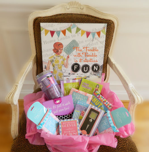 GIVEAWAY: One person will receive my GIRLS’ NIGHT GIVEAWAY is filled with fabulous items so you can host a get together with your best friends and includes cocktail napkins, cups, coasters, the cutest koozies ever with ruffles and embellishments, stationery and a wine bottle stopper. Plus, I’ve also included one of my most popular 14” x 14” mixed media art giclees.