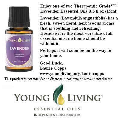 GIVEAWAY: Two people will receive one Therapeutic grade Lavendar Essential Oil from Laurie Copps, Young Living Independent Distributor.
