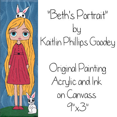 GIVEAWAY: One person will receive an original 9x3 acrylic and ink painting on canvas titled "Beth's Portrait" from Kaitlin Phillips Goodey, the artist behind Stunningly Strange.